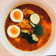 ③スープ・2cmスライスたまねぎ・トマト・トマトピューレ・すりおろしりんごを加える。 ④鶏肉に火が通ったら、調味し、中火で軽く煮込む。(10~15分) ⑤仕上げに素揚げした野菜と牛乳を加え完成。 ※辛さはカレー粉、塩分は塩で調節してください。私はベジタブルスープカレーをオーダー。 主人はポークスープカレーにチキンレッグをトッピング。 どうもチキンかポークか選べなかったらしい。笑 食べてみて感動したのは野菜の素揚げサックリ感! ここまでのサックリ感は他の店では味わえないものだ。Nov 15, 18 · これは スープカレー 服を着替え終わったら、切った野菜を素揚げしていきます。 あっという間の2時間で完成しました。 野菜を切って、煮て、蒸して、焼いて、揚げるだけの簡単調理